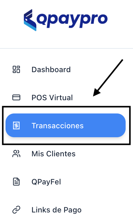 Primero, se debe ingresar al listado de transacciones del comercio. Para ello, desde el menú lateral izquierdo se selecciona el apartado Transacciones.