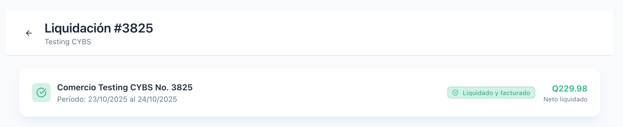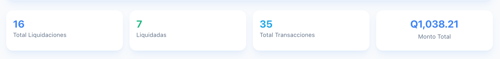 - Estado de la liquidación: Liquidado, Pendiente, Procesando o Error.