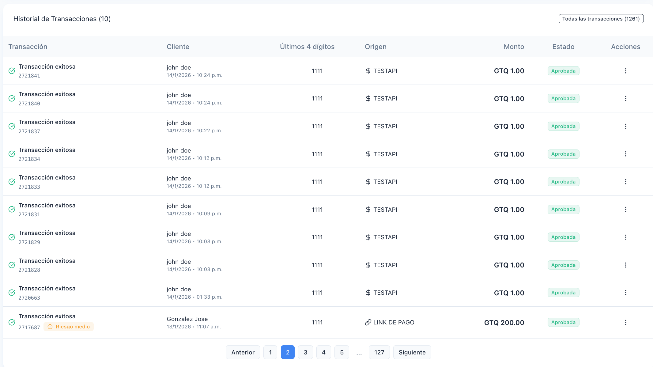 - Acciones: acceso a los detalles completos de cada transacción