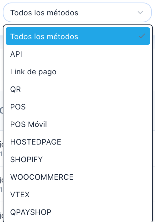 Filtro por Método (Origen de la transacción)