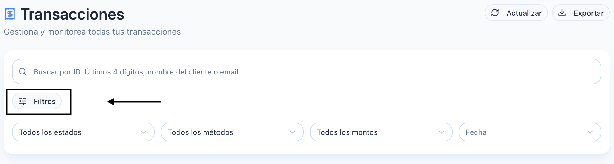 1. Filtro de búsqueda de transacciones