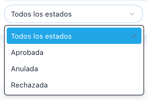 - Estado: aprobada, rechazada o anulada
